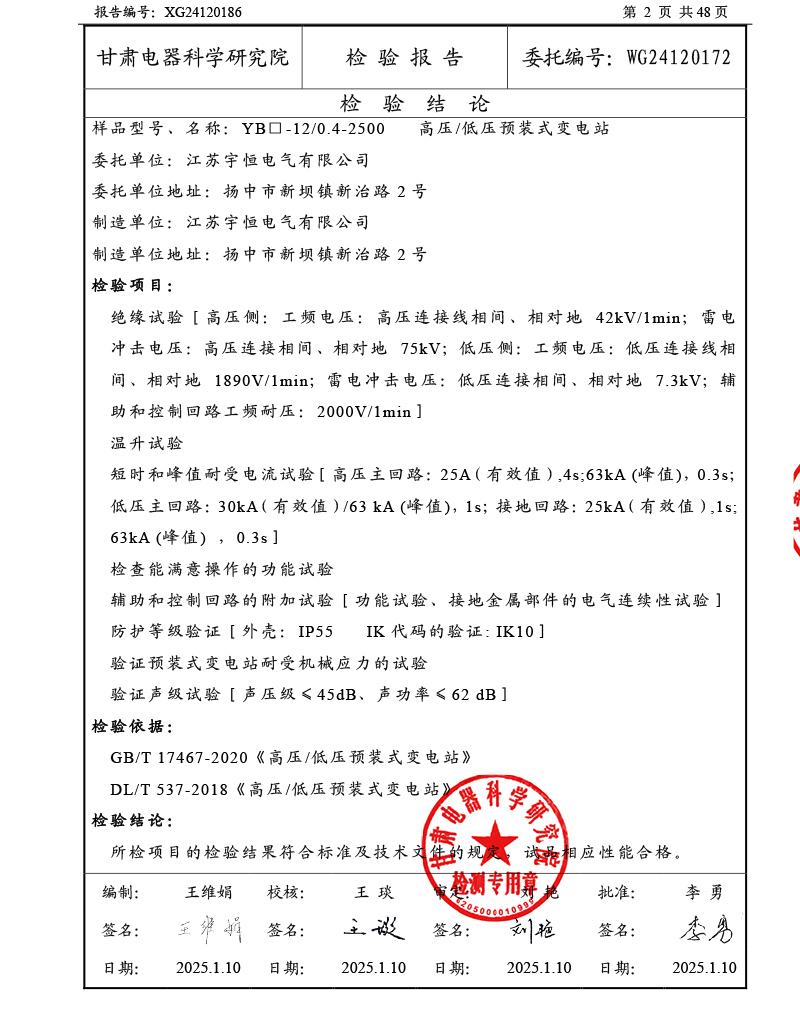 高低压预装式变电站2500(干变)检验报告